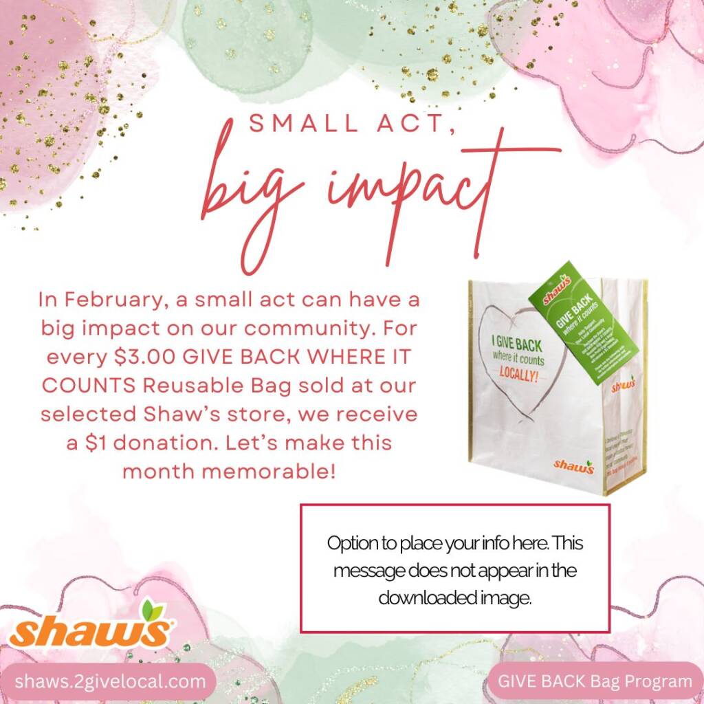 TOOL TIP: If you decide to create your own social media post, remember to include a photo from the Image Bank of the Give Back Bag so your followers know what to look for at your selected store location!